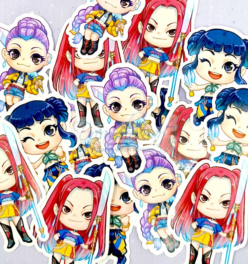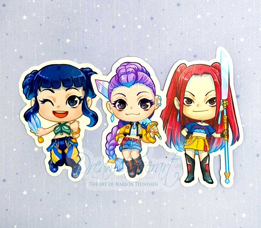 This is a sticker set of the Huntrix girls from the movie Kpop demon hunters!